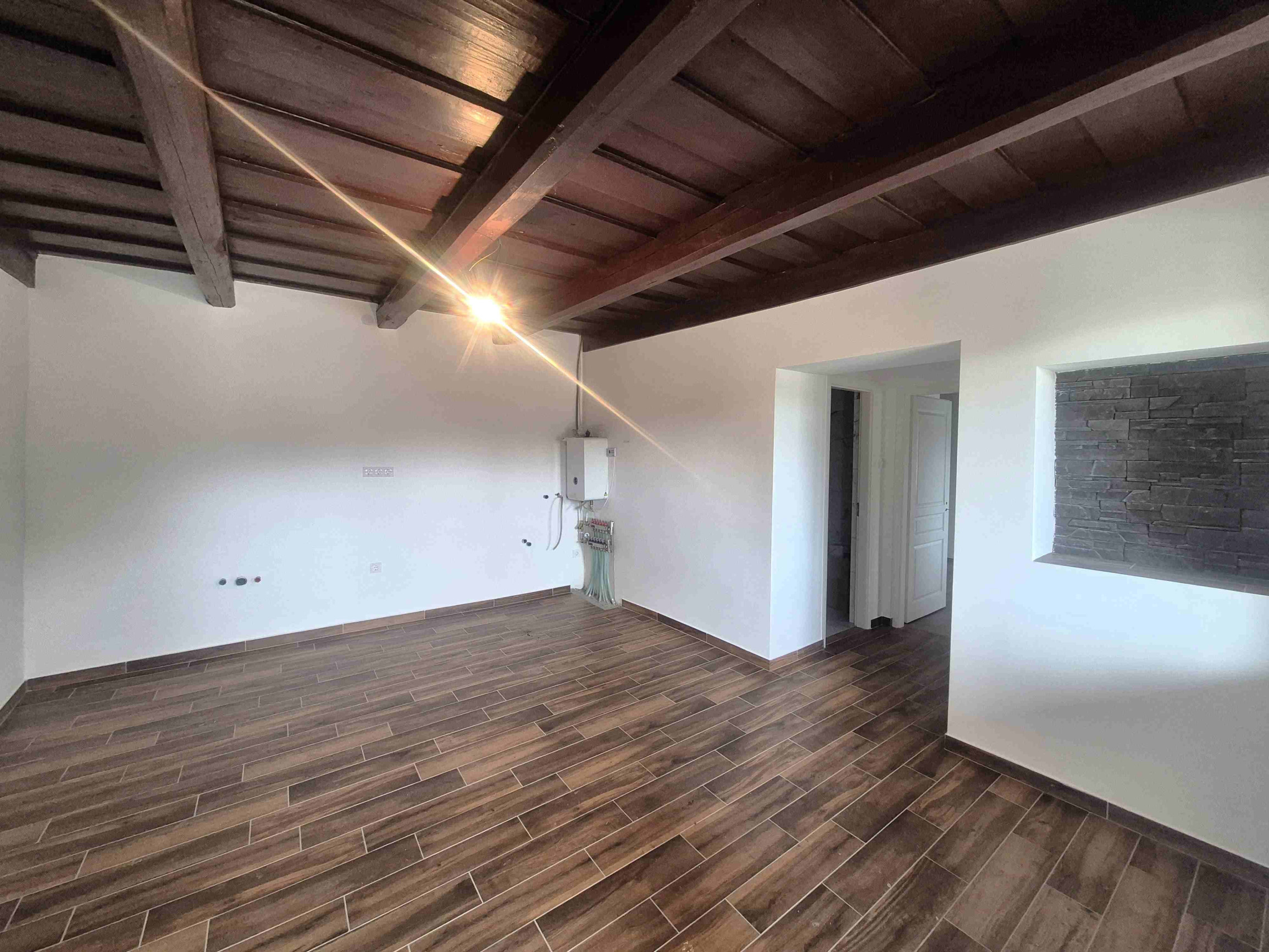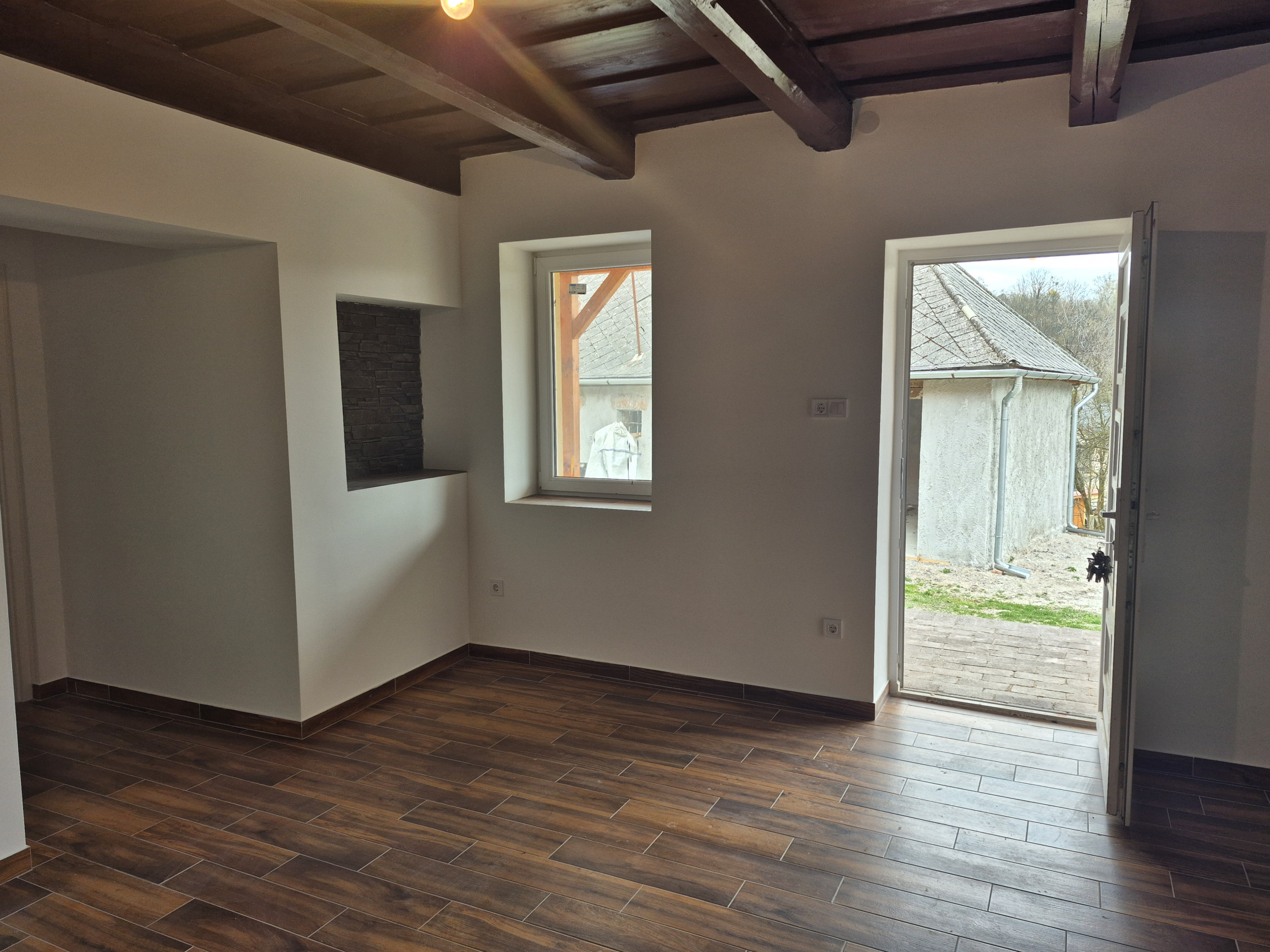 Dom prešiel kompletnou rekonštrukciou, pričom si zachoval svoju pôvodnú dušu – masívne kamenné múry a priznaný trámový strop, ktorý vytvára neopakovateľnú atmosféru tepla a domova.
